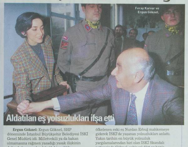 1989’da SHP, İBB’yi kazandı, akabinde Ergun Göknel İSKİ Genel Sekreteri oldu... Sekreteriyle ilişki yaşayan Göknel, eşinden boşanmak için “sessizlik” şartı koştu, ardından karısı Göknel’in yolsuzluklarını ifşa etti ve tarihe “İSKİ skandalı” olarak geçen olaylar patlak verdi.