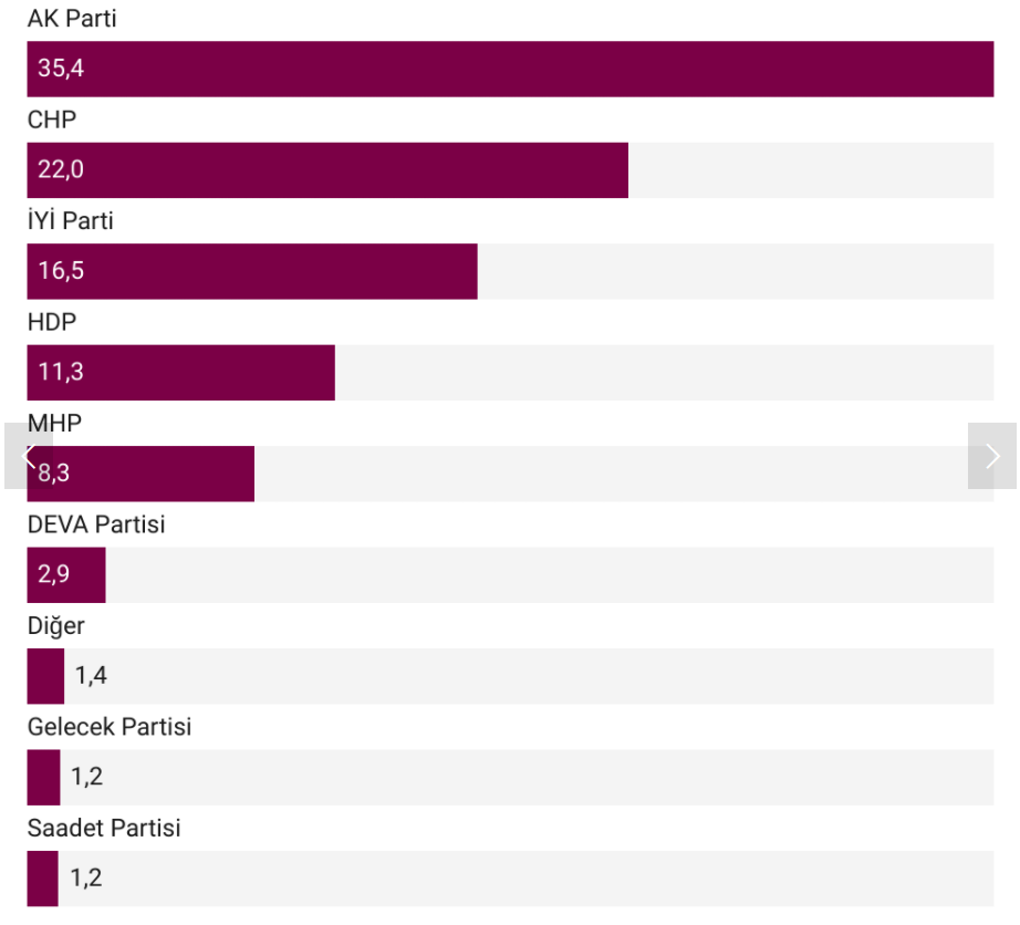 Hatırlanacağı üzere son seçimlerde CHP yüzde 22,6, AK Parti yüzde 42,6, MHP ise yüzde 11,1 oy almıştı. İYİ Parti'nin oy oranının CHP'ye bu kadar yakın olması büyük tartışmalara neden olurken birçok kişi anket sonucunu 'akılalmaz araştırma' şeklinde yorumladı.