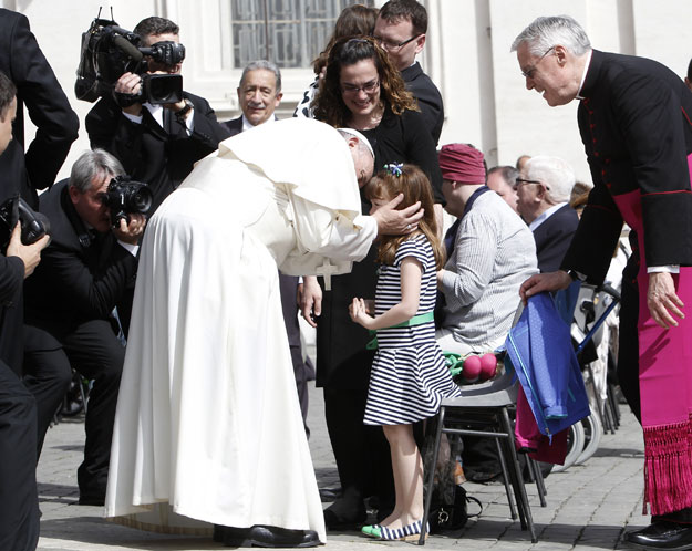 Oturumdaki duanın ardından Papa, Lizzy’nin yanına gelerek bir süre sonra görme yetisini kaybedecek küçük kızla yakından ilgilendi, sohbet etti. Lizzy, Papa’ya evinin bahçesinin yakınlarına düşen göktaşı parçası verdi. Ruhani lider de Lizzy’i takdis etti ve kendisi için dua edeceğini söyledi.