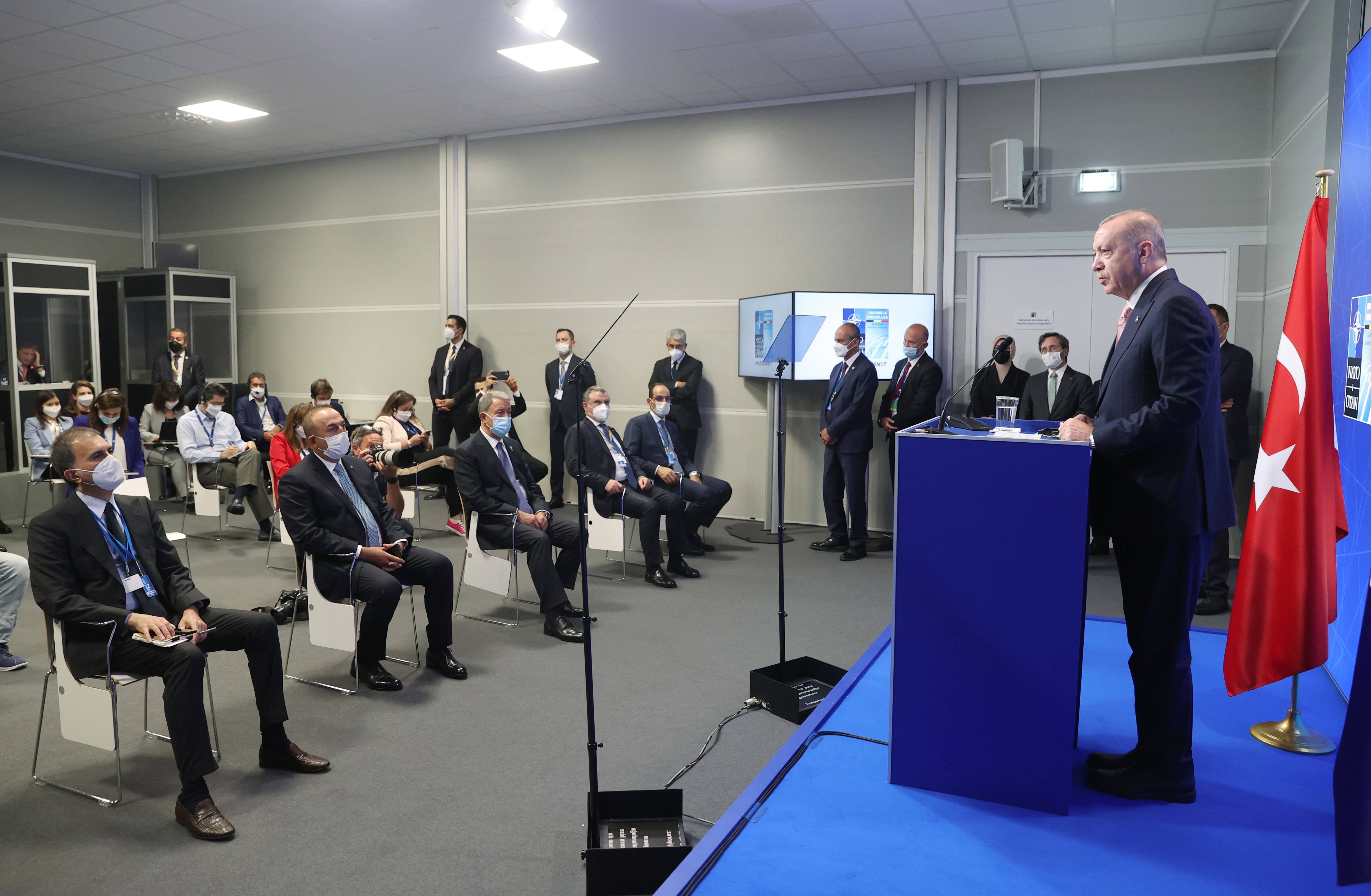 Belçika’nın başkenti Brüksel’de düzenlenen NATO Liderler Zirvesi sona erdi. Cumhurbaşkanı Recep Tayyip Erdoğan zirve sonrası ABD Başkanı Joe Biden ile yaptığı ikili ve heyetler arası görüşme sonra basın toplantısı düzenledi.