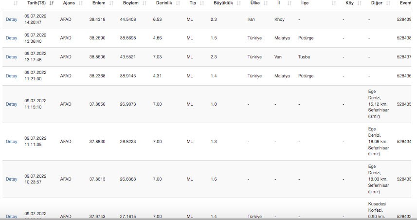 AFAD son depremler listesi