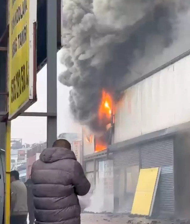 Ekiplerin çalışmasıyla yangın, etraftaki iş yerlerine sıçramadan kontrol altına alınarak söndürüldü.