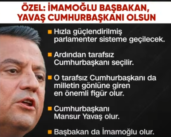 Fatih Altaylı’ya konuşan CHP Genel Başkanı Özgür Özel Mansur Yavaş’ın cumhurbaşkanı olmasını istedi.