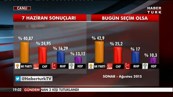 Seçim anket sonuçları dün akşam Habertürk'te yayınlanan bir programda açıklandı.
