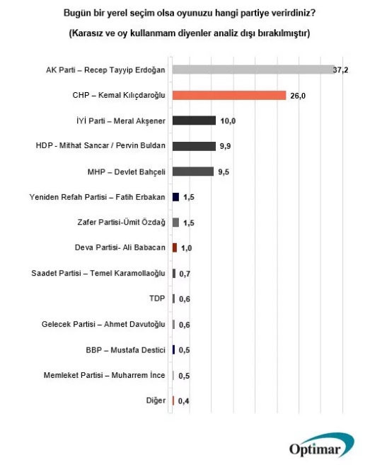 Optimar Araştırma Şirketi'nin paylaştığı son ankete göre sonuçlar: