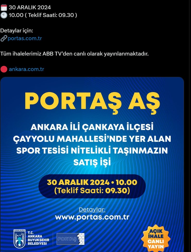Ankara Büyükşehir Belediyesi, Çankaya Çayyolu’ndaki spor tesisini ihale yoluyla satışa çıkardı. Bu karar, belediyenin kamu kaynaklarını elden çıkarmasıyla ilgili eleştirileri artırırken, geçtiğimiz ay Ebru Gündeş konserine harcanan 69 milyon TL yeniden gündeme geldi.