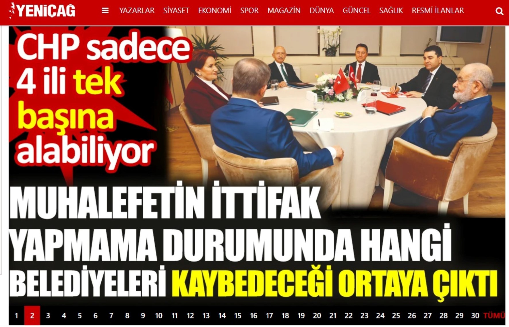 Son olarak İYİ Parti'nin medya organı Yeniçağ'dan dikkat çeken bir haber geldi. Haberde, CHP'nin ittifak yapmaması durumunda, yerel seçimlerde sadece 4 ili alabileceği belirtildi.