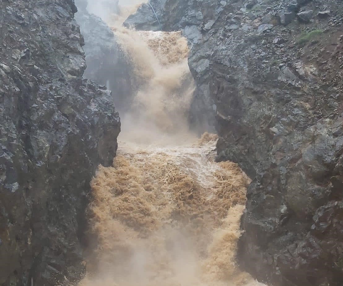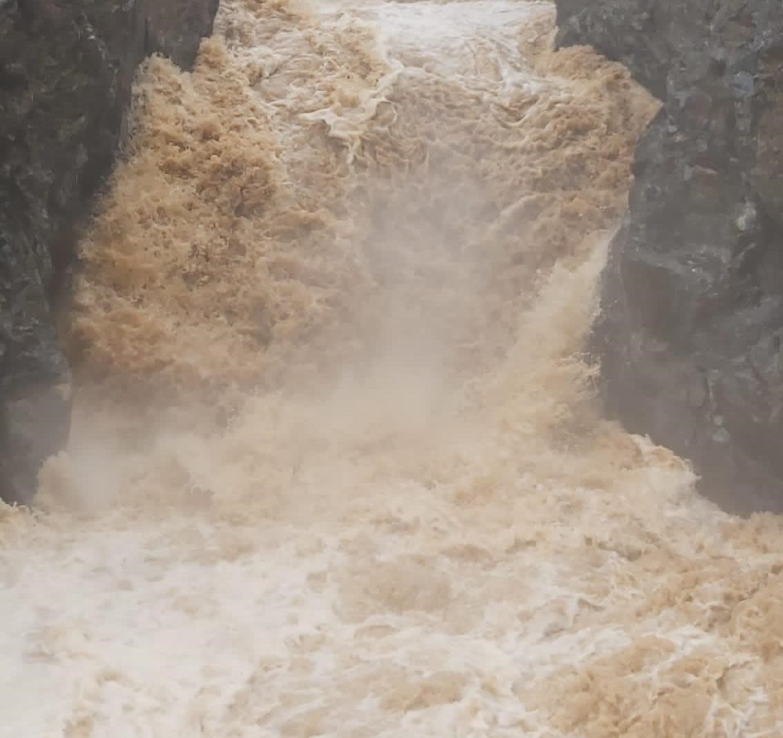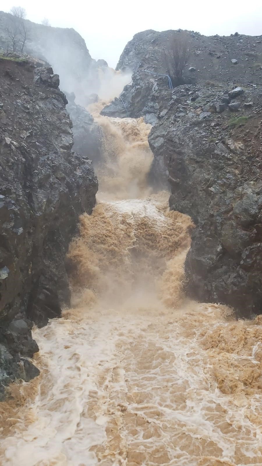 Elazığ'da sağanak yağış sonrası Sori şelalesinin coşma anı cep telefonu kamerasına yansıdı.