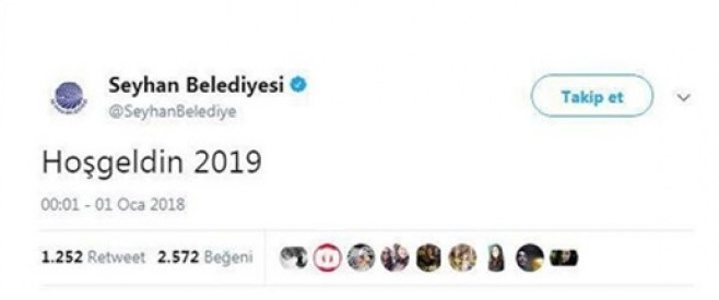 Seyhan Belediyesi'ne ait twitter hesabından paylaşılan "Hoşgeldin 2019" mesajı sosyal medyayı salladı.