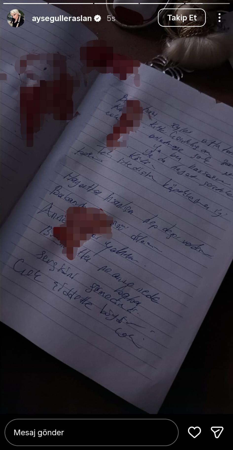 Olay, gece saatlerinde Kağıthane ilçesi Ortabayır Mahallesi'nde meydana geldi. İddiaya göre katıldığı bir yarışma programının ardından tanınan Ayşegül Eraslan'a ulaşamayan yakınları polise haber verdi. Olay yerine gelen polis ve sağlık ekipleri içeriye girdiklerinde Ayşegül Eraslan'ın hareketsiz şekilde olduğunu gördü. Eraslan'ın hayatını kaybettiği belirlendi. Eraslan'ın sosyal medya hesabından kanlı bir not paylaştığı öğrenildi. Genç kadının paylaşımlarında 'Ben hassasım ya da hayat gerçekten kötü. Tek istediğim köpeklerime iyi bakın. Hayatta insanlara hep değer verdim. Babamdan da özür dilerim. Bu hayatta ne anne ne de baba sevgisini görmedim çok şiddetle büyüdüm çok. Paylaşamadığım şeyler olacaktır, sizin bilmediğiniz, size anlatmadığım. Tek bildiğim ben çok iyi bir insandım. Kimseye kötülüğüm olmadı' yazdığı öğrenildi.