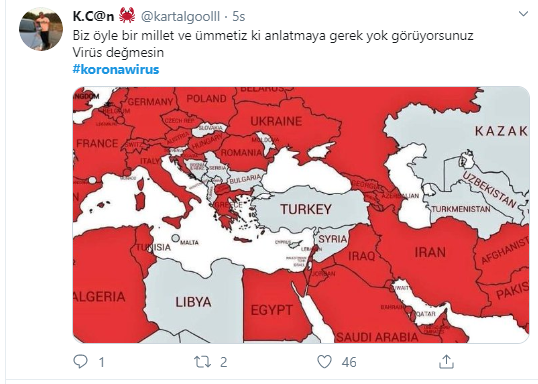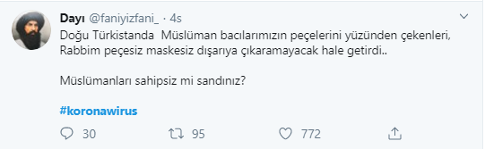 Sosyal medyada Doğu Türkistan’da Çin hükümetinin Uygur Türklerine uyguladığı zulme tepkiler devam ederken, koronavirüs ile ilgili paylaşımlar yankı uyandırdı.