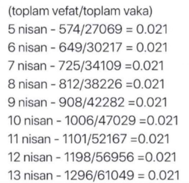 Kara’ya göre vaka sayısı arttıkça, büyük dalgalanmalar yaşanmadığı sürece, ölüm oranı vaka sayısının büyüklüğü ve ölüm artış hızının sabit kaldığı sürece 0.021 oranının da sabit kalacağını açıkladı.