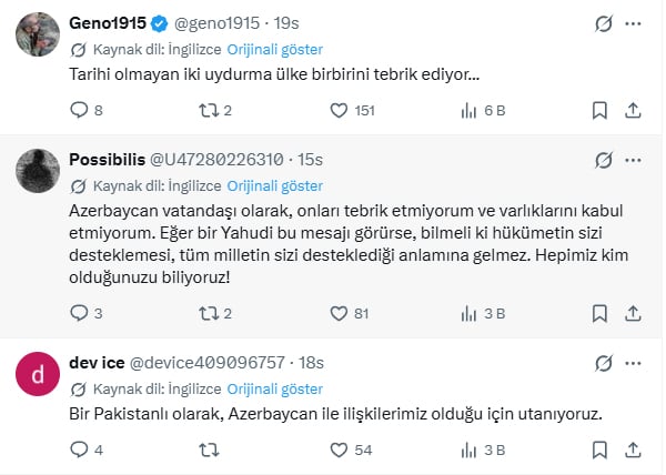 Sosyal medyadan mesaja tepki yağdı Azerbaycan’dan Siyonist İsrail’e kutlama