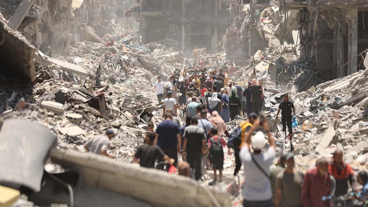 Konuşmasında, Dawoud Abo Alkas tarafından 31 Mayıs 2024'te çekilen "İsrail askerleri, Gazze'nin kuzeyindeki Cibaliya'da ağır yıkım bırakarak çekildi" başlıklı fotoğrafa da yer veren Erdoğan, Gazze'deki yıkımı gözler önüne seren fotoğrafla ilgili şunları söyledi:
