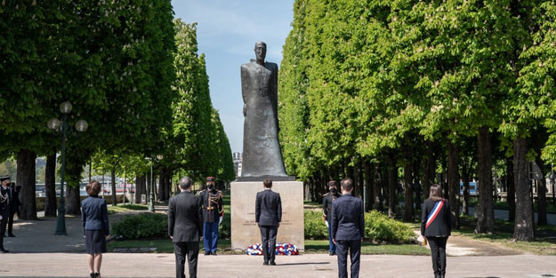 24 Nisan'ı 2019 yılında sözde "Ermeni Soykırımını Anma Günü" olarak ilan eden Fransa'da Cumhurbaşkanı Emmanuel Macron, 'Ermeni Soykırımı Anıtı'na gitti.