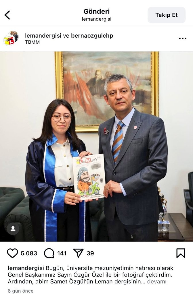 İslami değerlere ve toplumsal hassasiyetlere saygı göstermeyip sıkça provokatif çizimlere imza atan Leman dergisi, 26 Haziran 2025 tarihli sayısında da bombalanan bir şehrin üzerinde Peygamberimiz Hz. Muhammed'i (sav) ile Hz. Musa'yı resmetti. Ahlaksız Leman dergisi 6 gün önce TBMM'de Özgür Özel'i ziyaret ettiği ortaya çıktı.