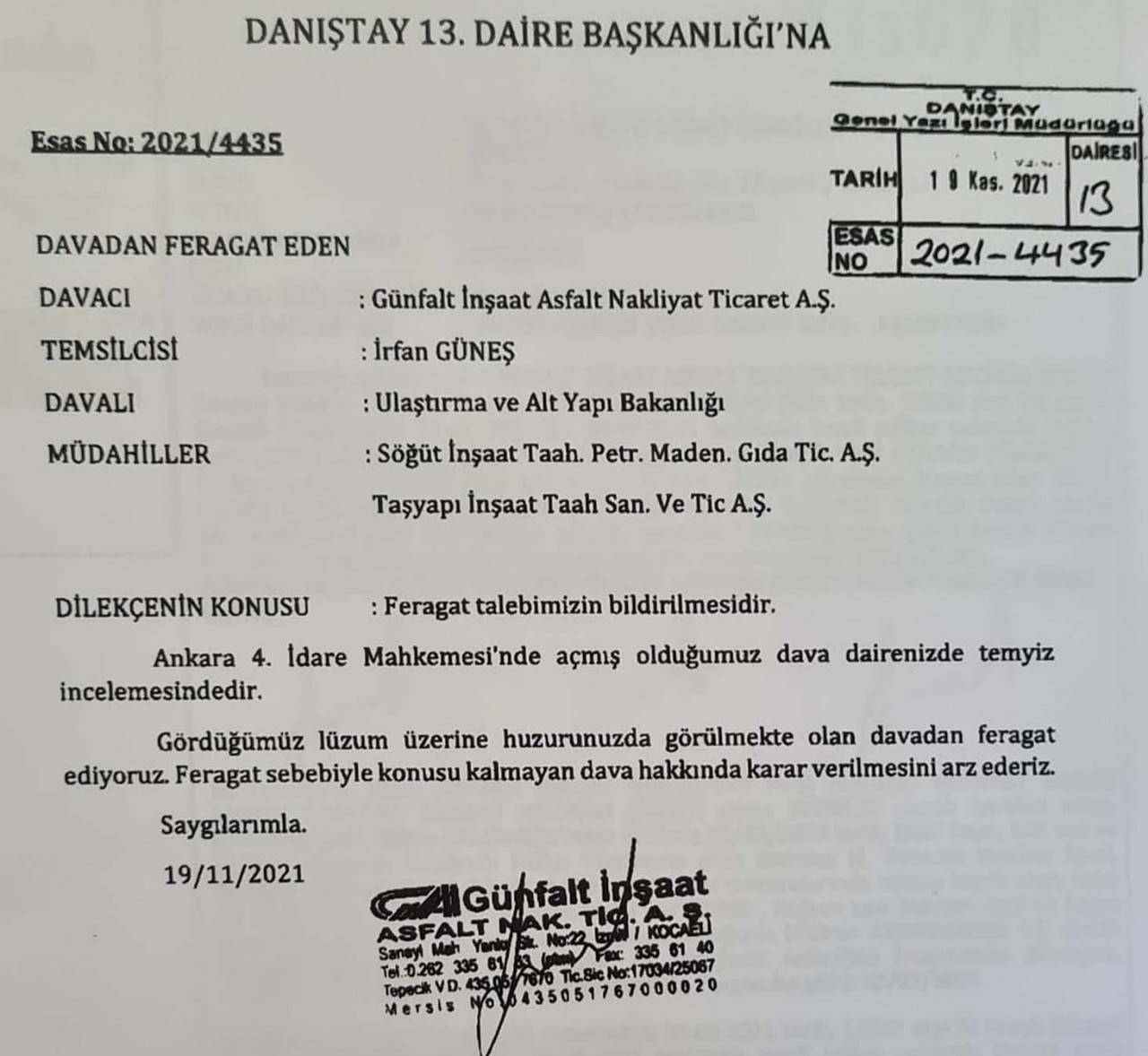 -İhale çantacıları işlerini görünce 19.11.2021 günü Danıştay’a başvurarak davalarından feragat ettiler. Sence neden?