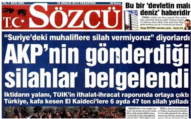 Dine düşman olan Sözcü, terör örgütleriyle de kanki olmayı ihmal etmiyor. ABD’nin kucağına oturarak Türkiye’ye darbe yapmayan kalkan FETÖ’nün ilk hainliğinin başlangıcı olarak görülen MİT TIR'ları olayında FETÖ-Sözcü birlikteliğini görmek mümkün. 15 Aralık 2013 tarihli Sözcü Gazetesi’nin manşeti FETÖ’nün sözcüsü iddialarını kanıtlar niteliğinde.