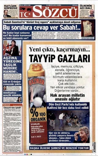 Türkiye'yi açıkça hedef alarak Gezi Parkı üzerinden kirli bir oyun sahneye konuldu. Ağaç katliamı bahanesiyle Türkiye’nin dört bir yanında sokaklar savaş alanına döndü. Gezi Parkı’ndaki ağaç kesiminin arkasına sığınan şer odaklar seçilmiş iktidarı devirmek için sivil darbe girişiminde bulundu. Taksim’de başlayan bu darbe girişimine küresel baronların yurt dışındaki ve yurt içindeki işbirlikçileri basın üzerinden darbeye çanak tuttu. Gezi ihanetini sahiplenenler arasında Sözcü hiç olmaz mıydı? Sözcü Gezi'nin tam ortasındaydı.