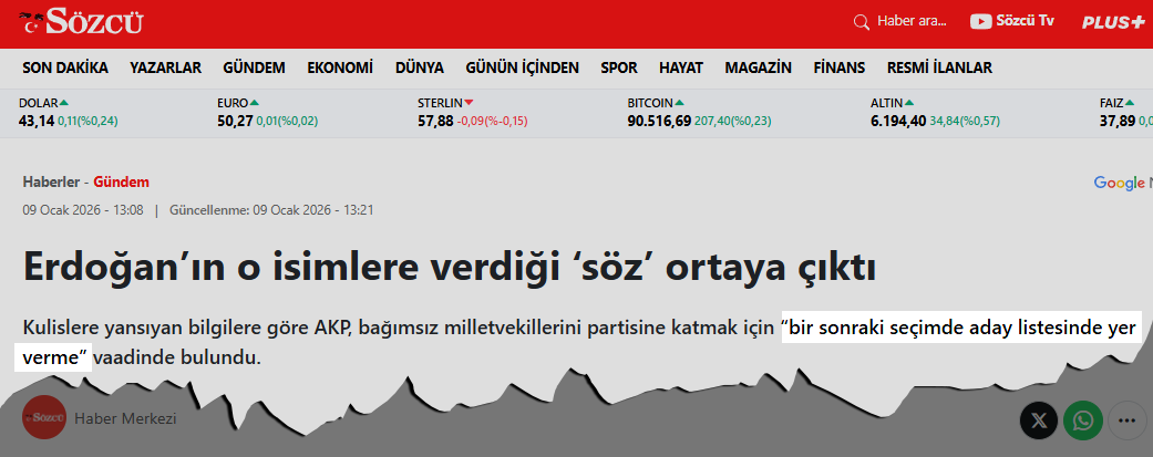 Milletin merakını sömürerek internet sitesine trafik çekmeye çalışan Sözcü, haberin içine girildiğinde hiçbir somut veriye dayandıramadığı bir senaryoyu okuyucusuna dayattı.