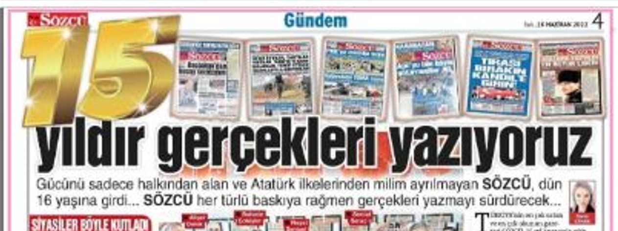 Sahibi yurt dışında kaçak yaşayan CHP yandaşı Sözcü gazetesi bugün 16. yılını kutladı. 16. yıl için bir haber yayınlayan yalan makinesi Sözcü, haberinde öyle cümleler kullandı ki bize bu haberi yaptırmak zorunda bıraktı.