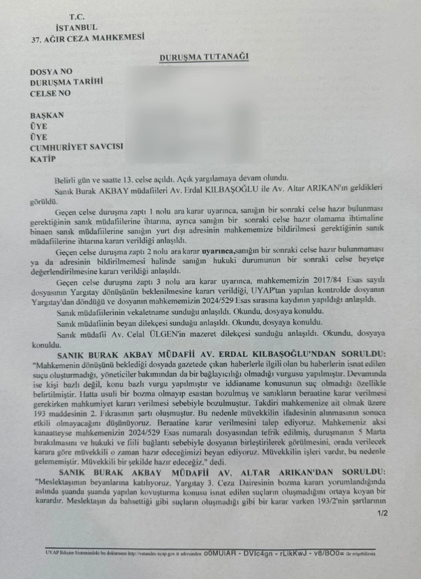 Burak Akbay ile birlikte Sözcü gazetesinin yazarları Emin Çölaşan, Necati Doğru ve eski genel yayın yönetmeni Metin Yılmaz'ın da aralarında bulunduğu 9 kişinin yargılandığı ve 3 yıl 6 ay ile 2 yıl 1 ay arasında değişen hapis cezaları verilen dava Yargıtay'a taşınmıştı. Dosyayı inceleyen Yargıtay, 26 Kasım 2024 tarihinde yaptığı değerlendirmede oy birliği ile kararları bozarak yeniden yargılama yolunu açmıştı.