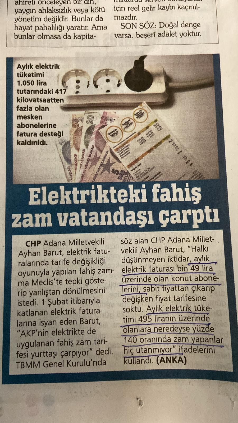 “CHP Adana Milletvekili Ayhan Barut, elektrik faturalarında tarife değişikliği oyunuyla yapılan fahiş zamma Meclis’te tepki gösterip yanlıştan dönülmesini istedi” denilen haberde, esas oyunu Sözcü ve CHP’li vekil yaptı.