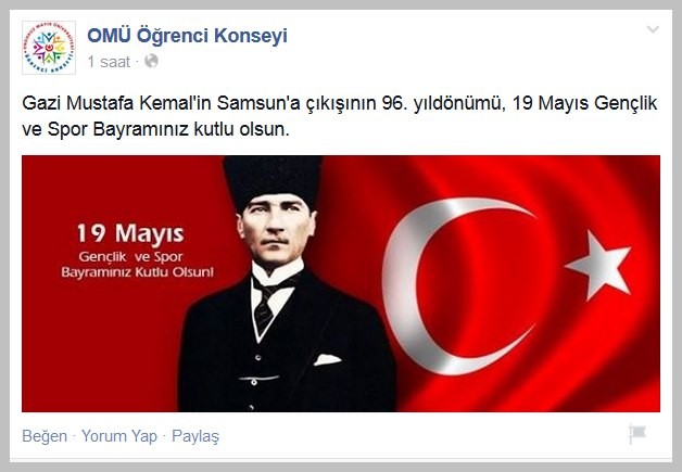 Aynı Konsey'in bugün itibarıyla Cumhuriyet Halk Partisi'nin (CHP) kurucusu ve seçimsiz iş başına gelerek partili cumhurbaşkanı olan Mustafa Kemal'in fotoğrafını paylaşarak yaptığı, "Gazi Mustafa Kemal'in Samsun'a çıkışının 96. yıldönümü, 19 Mayıs Gençlik ve Spor Bayramınız kutlu olsun." cümleleri akıllara, "Acaba azılı Kemalist medya buna da 'CHP'nin Gençlik Kolları gibi çalışıyorlar' der mi?" sorusunu getirdi.
