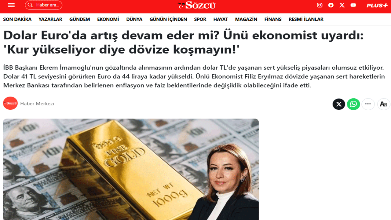 Sözcü'nün İBB Başkanı Ekrem İmamoğlu'nun gözaltına alınması sonrası piyasalarda yaşanan dalgalanma sonrası bu şekilde bir haber servis etmesi büyük şaşkınlığa neden oldu.