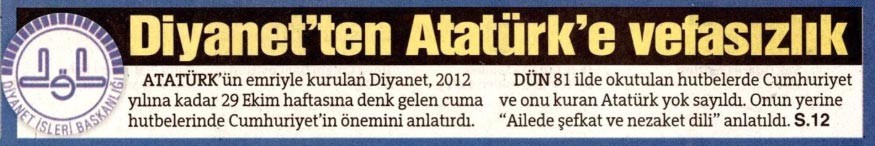 “Atatürk'ün emriyle kurulan Diyanet, 2012 yılına kadar 29 Ekim haftasına denk gelen Cuma hutbelerinde Cumhuriyet'in önemini anlatırdı.