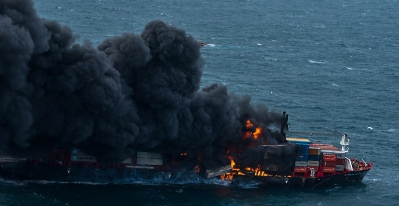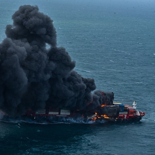 Sri Lanka açıklarında; 25 ton nitrik asit, farklı kimyasal madde ve kozmetik ürünler taşıyan dev gemi 5 gündür yanıyor. Yangında 2 kişinin yaralandığı öğrenildi.