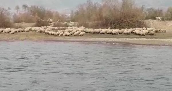 Tokat'ta çobanlık yapan Ahmet Arslan, Kelkit Çayı'ndaki su seviyesinin yükselmesi nedeniyle otlattığı 250 koyunla mahsur kaldı.