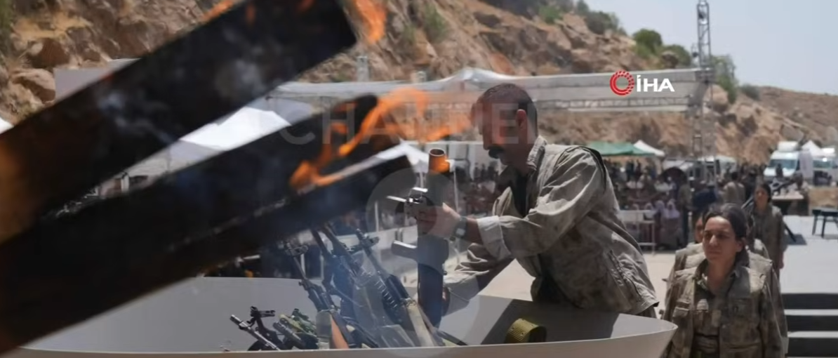 PKK'nın yayın organı Rûdaw’ın son dakika olarak geçtiği bilgilere göre, yerel saatle 11:25'te başlayan ve yaklaşık 20 dakika süren silah imha törenine, KCK Yürütme Konseyi Eş Başkanı Bese Hozat liderlik etti.