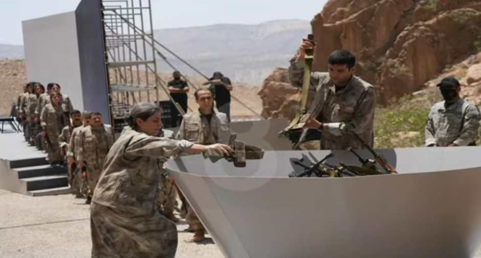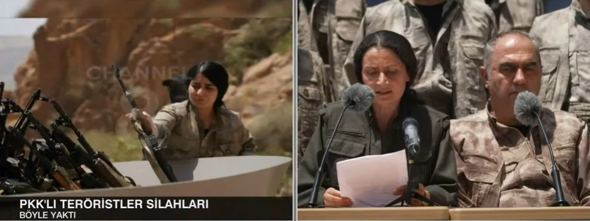 Süleymaniye'nin Surdaş bölgesinde, Terörist PKK'nin "barış süreci" kapsamında düzenlediği silah bırakma töreni, KCK Yürütme Konseyi Eş Başkanı kadın terörist Bese Hozat'ın bizzat katılımıyla gerçekleşti.