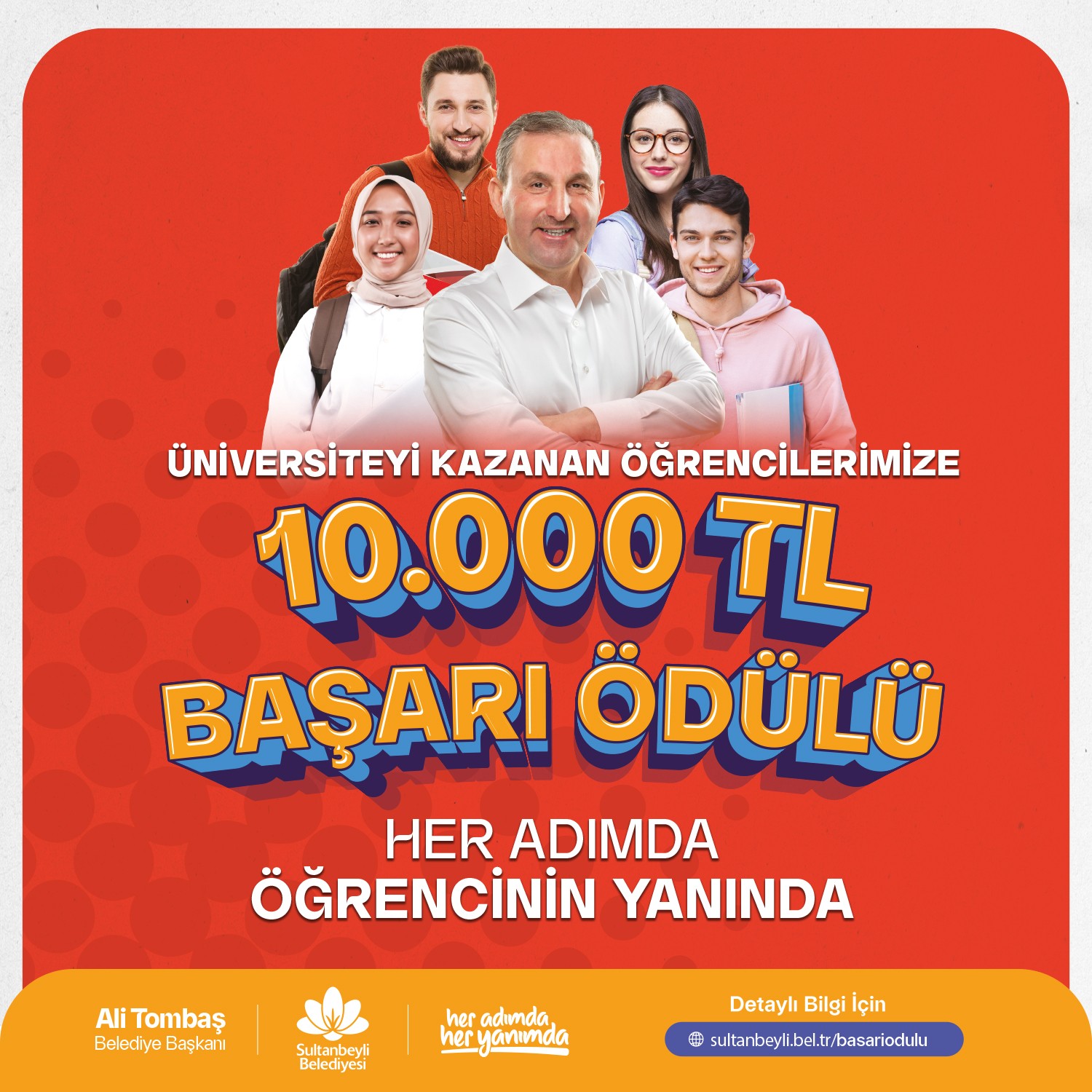 “Sevgili gençler. Başarıya giden her adımınızda sizin yanınızda olacağımızın sözünü vermiştik. Şimdi bu sözümüzü yerine getirme zamanı. Sultanbeyli’mizde ikamet eden ve üniversiteyi yeni kazanan öğrencilerimize 10 bin TL Başarı Ödülü veriyoruz. Ülkemizin daha güçlü yarınlarının teminatı siz gençlerimizi her alanda desteklemeye kararlılıkla devam edeceğiz. Hayırlı ve bereketli olsun.