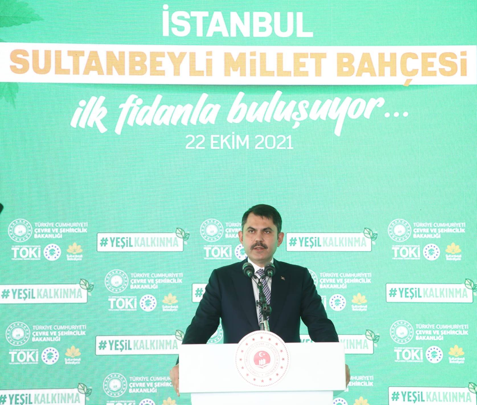 Çevreye saygılı iklim dostu şehirlerin inşası hedefiyle çalışmalarını sürdürdüklerini belirten Bakan Kurum, “Hedefimiz 81 ilimizde 81 milyon metrekare millet bahçesi kazandırmak. İnşallah bugün de Sultanbeyli Millet Bahçemizin ilk fidanlarını toprakla buluşturuyoruz. Amacımız iklim dostu çevreye saygılı şehirler kurmak. Ülkemize, şehirlerimize kazandırdığımız yeşil yatırımlarımıza bir yenisini daha eklemenin mutluluğunu yaşıyoruz. Sultanbeyli’ye, fethin kapısında yaşayan insanlarımıza yakışır Millet Bahçemiz her yaştan vatandaşlarımızın ihtiyaçlarına cevap verecek nitelikte olacak. Önümüzdeki yıl bitmeden yapımını tamamlayıp sizlerin hizmetine sunmuş olacağız. Millet Bahçemiz; Sultanbeyli’miz, vatandaşlarımız ve güzel yavrularımız için hayırlı olsun. Yeşil kalkınma, sürdürülebilir kalkınma hedeflerimiz doğrultusundaki kazandırdığımız bu projelerimiz İstanbul’umuza değer katacak.” dedi.