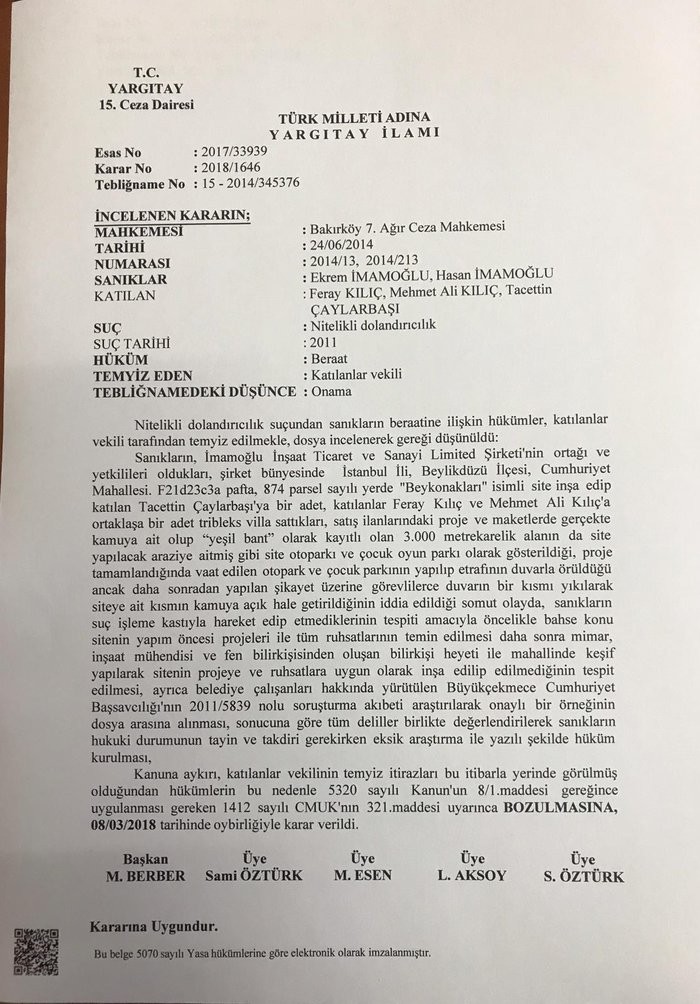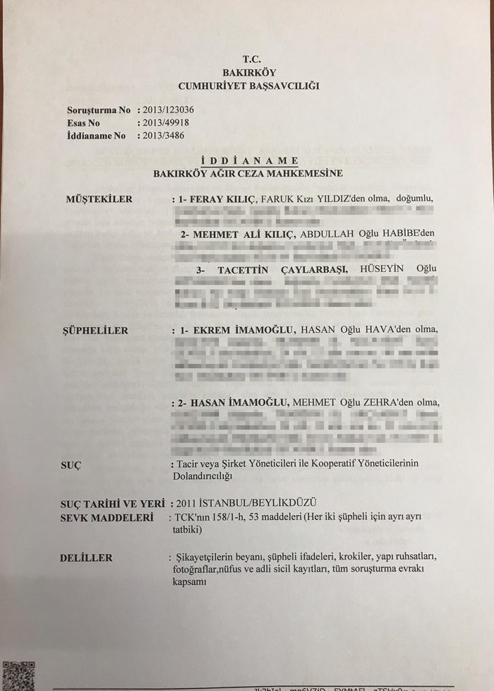 yeniakit.com.tr 2011’de İmamoğlu İnşaat, Beylikdüzü’nde “Beykonakları” isimli site inşa etti, Sitenin önünde, kamuya ait 3 bin metrekarelik alanı siteye dahilmiş gibi gösterdi. İmamoğlu İnşaat’ın Beykonakları projesinden ev alan vatandaşlar, gerçeğin ortaya çıkmasıyla birlikte dolandırıldıklarını anladı. Suç duyurusunda bulunulduktan sonra nitelikli dolandırıcılıktan ceza davası açılan İmamoğlu hakkında, yargı işlemi devam ederken, akıllara 1950 ve 1960’ların dolandırıcısı Sülün Osman geldi. Sülün Osman, kamuya ait malları kendi mülkü gibi gösterip vatandaşlara satarak dolandırıcılık yapıyordu!..