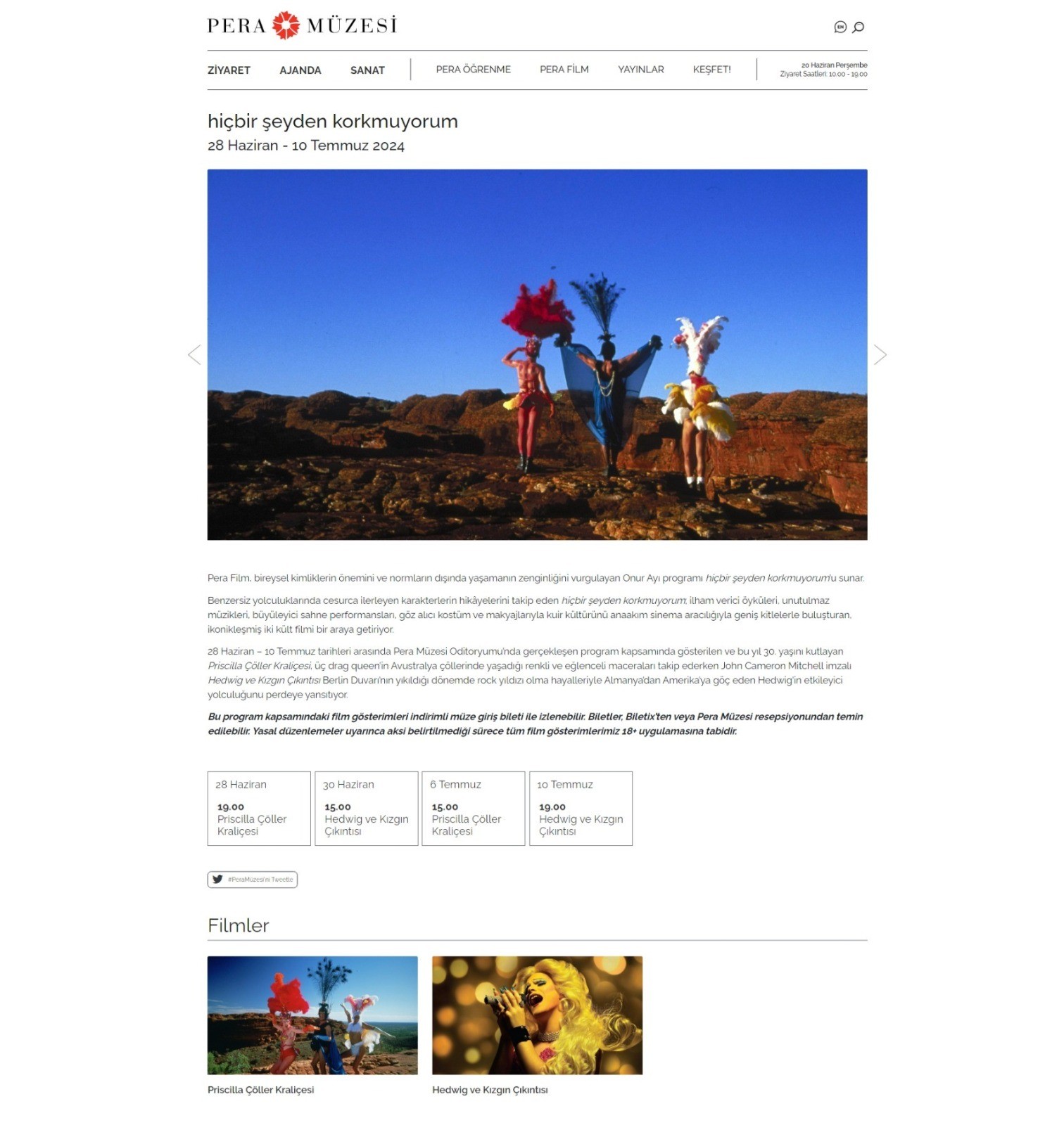 Vakıf, sözde ‘Onur Ayı’ adına “hiçbir şeyden korkmuyorum” başlığıyla düzenlenecek etkinlikte sapkın homolara ait ‘Priscilla Çöller Kraliçesi’ ve ‘Hedwig ve Kızgın Çıkıntısı’ adlı iki filmi yayımlayacak.