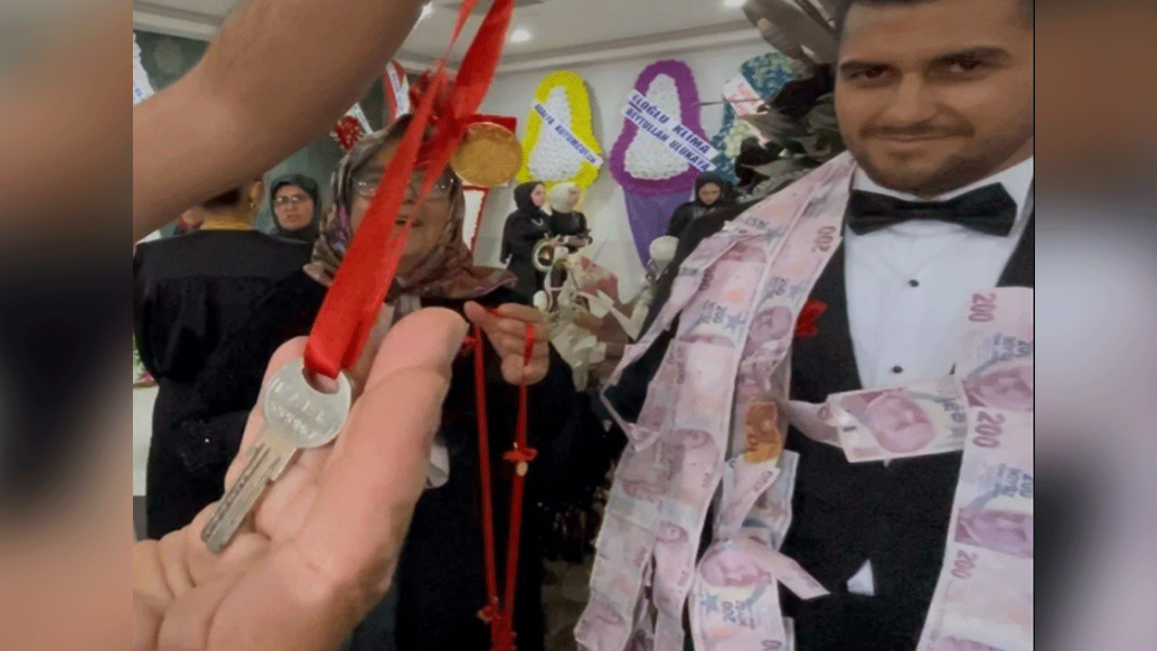 Yakın zamanda babasını kaybeden damat Hüseyin Arslan'ın babaannesi Emine Arslan takı töreninde tek torununa bir ev ve son model otomobil anahtarının yanı sıra İncekum'da bir adet de arsa taktı.