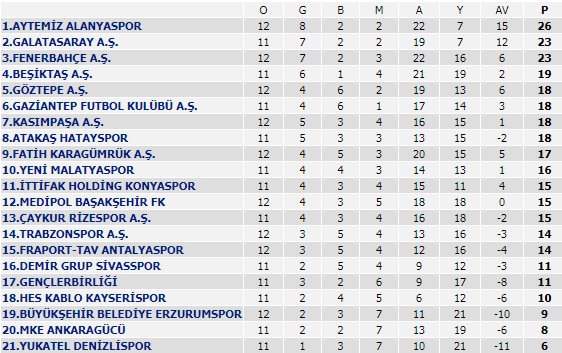 Not: Medipol Başakşehir haftayı bay geçecek.