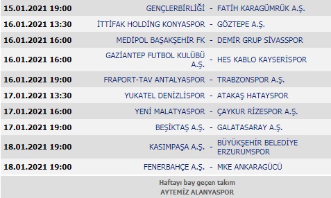 Süper Lig 19. hafta | Futbolseverler, Süper Lig’de 19. hafta maçlarının ne zaman başlayacağını araştırıyor. Süper Lig haftanın maçları | Süper Lig güncel puan durumu | Süper Lig 19. hafta bay geçen takım | Süper Lig haftanın maçları