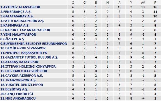 Süper Lig 6. hafta sonuçları