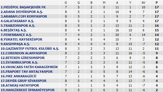 Süper Lig puan durumu güncel 3 Ekim Pazartesi