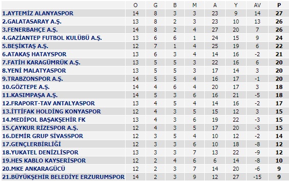 Süper Lig 14. hafta sonuçları | Süper Lig'de 14. hafta maçları bugün oynanacak Sivasspor-Gençlerbirliği, Kayserispor-Konyaspor, Ankaragücü-Beşiktaş ve Rizespor-Antalyaspor maçlarıyla tamamlanacak. Futbolseverler güncel puan durumunu ve bir sonraki haftanın programını merak ediyor. Peki, Süper Lig 15. hafta hangi gün oynanacak? | Süper Lig lider kim?