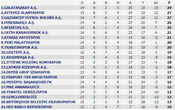 Süper Lig puan durumu güncel | Süper Lig 15. hafta programı