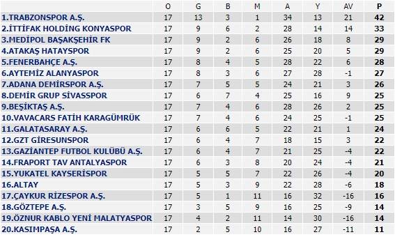 Süper Lig’de 17. hafta Fenerbahçe-Beşiktaş derbisiyle sona erdi. Futbolseverler oluşan puan durumunu araştırmaya başladı. Peki, 17.haftada kim lider?
