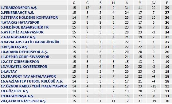 Süper Lig puan durumu | Süper Lig puan güncel