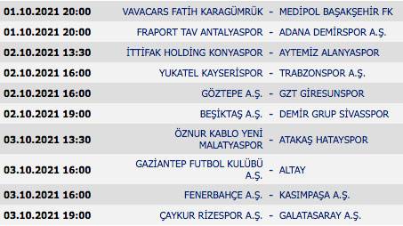 Süper Lig 8. hafta maçları! Süper Lig'de 8. hafta programı belli oldu. Süper Lig 8. hafta maçları 1 Ekim saat 20:00’da Karagümrük-Başakşehir, Antalyaspor-Adana Demirspor maçı ile start verecek. Süper Lig 8. hafta Trabzon maçı ise 2 Ekim’de saat 16:00’da Kayserispor ile karşı karşıya gelecek.