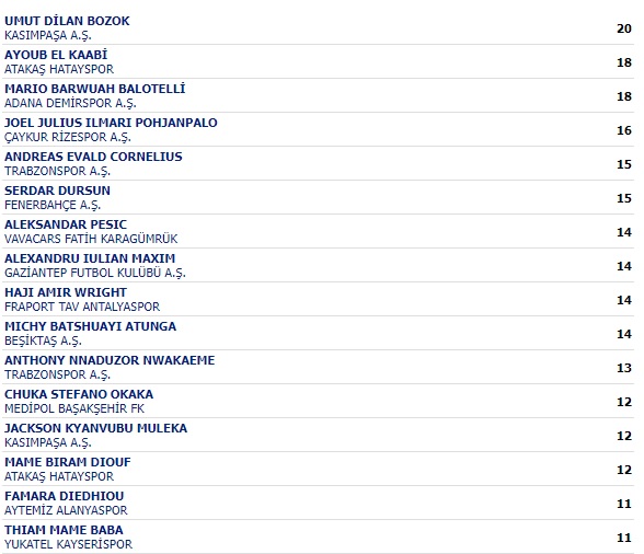 Süper Lig’de 2021-2022 sezonu gol krallığına 20 gol ile Kasımpaşa forması giyen Umut Dilan Bozok ulaştı.