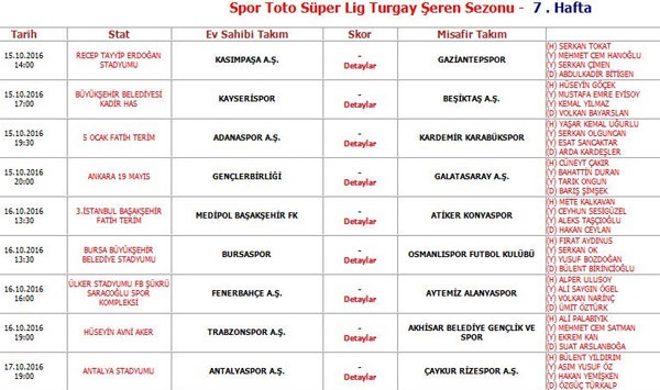 Türkiye Futbol Federasyonu, Süper Lig'in 7. haftasında oynanacak maçlarda görev alacak hakemleri açıkladı.